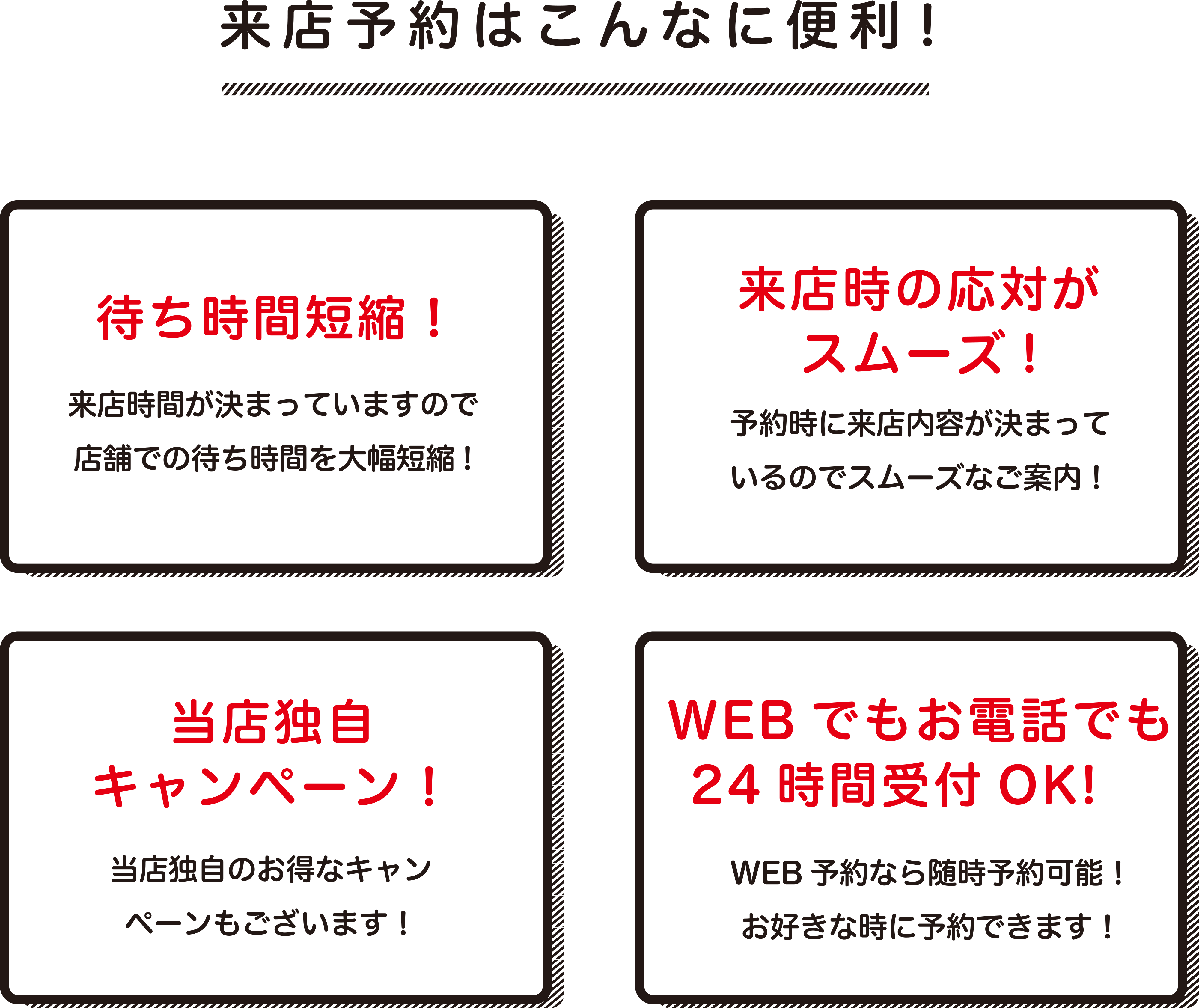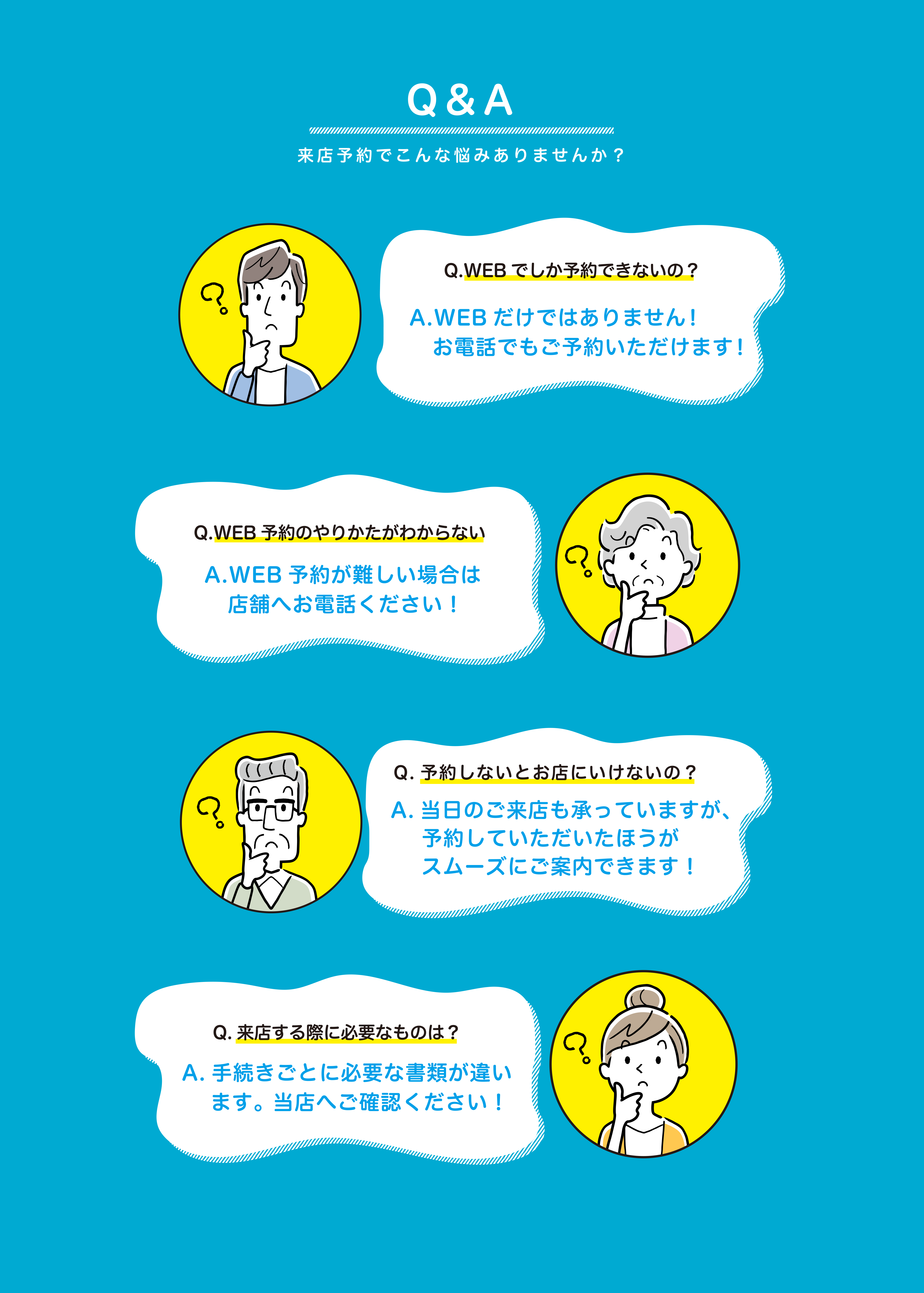 ※当日の来店予約については、ご来店3時間前まで「ドコモのホームページ」または自動音声による店頭来店予約専用ダイヤルにて受付いたします。3時間未満でのご来店をご希望の場合は、直接店舗にご連絡ください。※予約可能日や時間帯は店舗によって異なります。※当日の混雑状況によりお時間通りのご案内とならない場合がございます。
